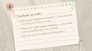 For a fuller picture of what puberty involves — including what happens in girls, boys, and transgender teens, and why — see the companion resource: Puberty and Body Changes.