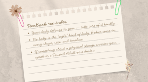 Your body is growing and developing. This might include growing taller, body hair appearing, skin changes like pimples, a deeper voice, or changes in body shape. These changes are part of puberty — and we cover them in more detail in the companion resource, Puberty and Body Changes.