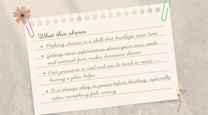Growing up means making more choices for yourself. Some are small — what to do with pocket money. Some are much bigger — how to handle pressure from friends, or whether to go along with something that feels wrong.